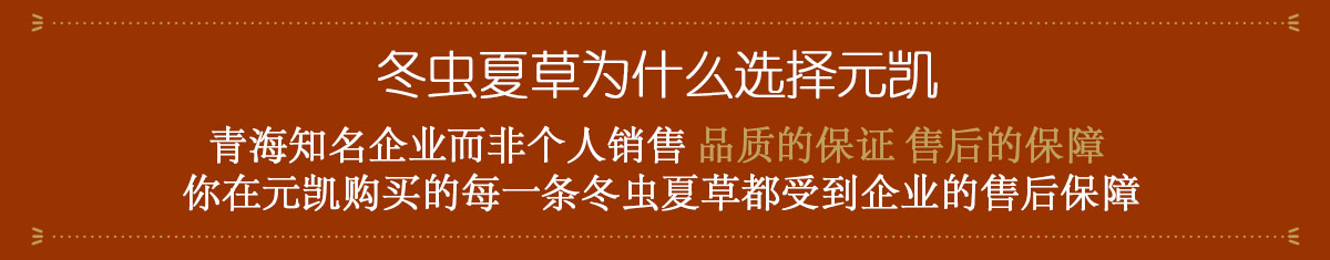 公司專業(yè)致力于青藏高原野生冬蟲夏草銷售、采收、精選包裝和現(xiàn)代化生產(chǎn)、研發(fā)等,并且在青海玉樹西藏那曲設(shè)立了采購站,專門采購地道的野生冬蟲夏草,充分保證了產(chǎn)品的品質(zhì)。元凱長期向國內(nèi)眾多著名藥材經(jīng)銷商、港澳臺以及東南亞中藥材采購商供應(yīng)冬蟲夏草,多次被省、市、縣授予多種榮譽稱號“青海省知名商標(biāo)”、“青海省誠信單位”、“青海省名優(yōu)企業(yè)”、“守合同重信用企業(yè)”等。
